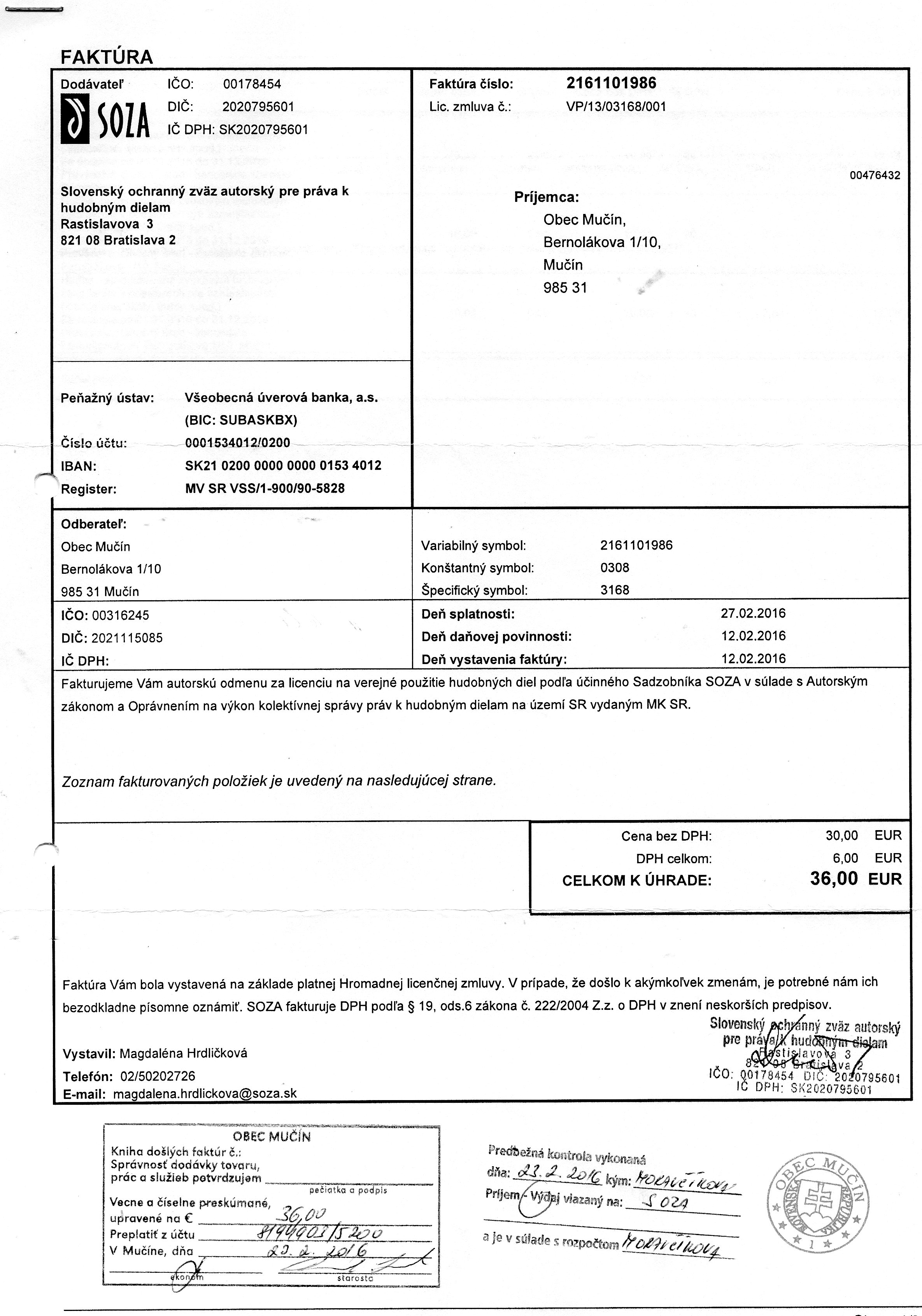 Faktúra č. 0176395762, Suma: 48,60 €,Dátum: 30.10.2015, Dodávateľ: ORANGE Slovensko, IČO: 356 97 270, DIČ: 20 20 31 05 78, Predmet za hlasové služby |