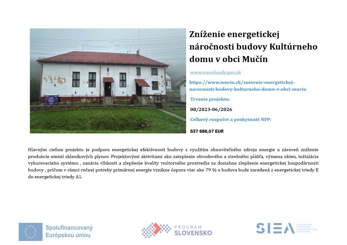 Zníženie energetickej náročnosti budovy Kultúrneho domu v obci Mučín