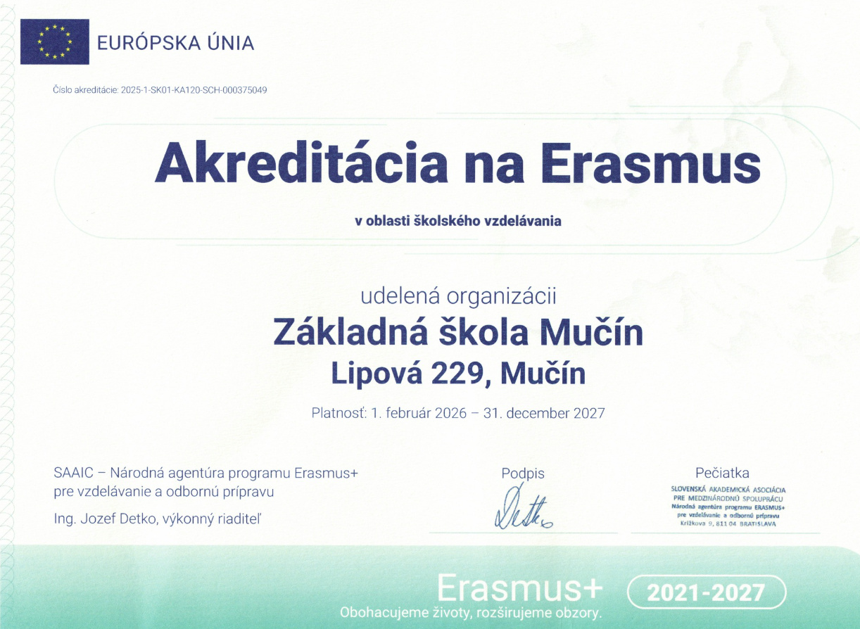 Naša škola získala akreditáciu v programe Erasmus+, vďaka ktorej môžu naši žiaci vycestovať do zahraničia a zúčastniť sa vzdelávacích pobytov na partnerských školách. Ide o program Európskej únie, ktorý podporuje kvalitné vzdelávanie, jazykový rozvoj a osobnostný rast detí. Počas mobility sa žiaci učia spolu so zahraničnými rovesníkmi, zapájajú sa do spoločných projektov, spoznávajú inú kultúru a získavajú nové skúsenosti priamo v praxi. Väčšina nákladov na cestu, ubytovanie a program je hradená z finančných prostriedkov EÚ. Čo to prinesie Vášmu dieťaťu? Účasť v programe pomáha deťom: prirodzene si zlepšiť cudzie jazyky a nebáť sa komunikovať, stať sa samostatnejšími, zodpovednejšími a istejšími v nových situáciách, získať nové priateľstvá a spoznať život v iných krajinách, učiť sa zážitkovo a modernými formami mimo bežnej triedy, rozšíriť si obzory a lepšie sa pripraviť na ďalšie štúdium i budúcnosť. Mobilita Erasmus+ nie je len výlet do zahraničia. Je to skúsenosť, ktorá deťom pomáha dozrieť, osamostatniť sa a získať sebavedomie, ktoré využijú počas celého života.